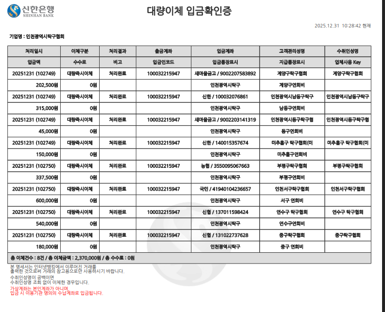 2025년 각 구협회 하반기 연회비 지원관련하여 공지드리오니 참고 하십시요